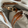 - Premium canvas with gold toned hardware