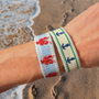 Capture your coastal spirit with these playful embroidered tassel bracelets. Woven with care and detailed with charming tassels, each bracelet measures 3/4" wide and adjusts from 5.5" to 9" to fit your wrist perfectly. Ideal for adding a splash of seaside fun to any outfit!