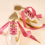 Give your shoes a playful upgrade with our Gingham Shoelaces. Soft yet durable, these laces are designed for all-day comfort and easy tying, with just the right flexibility for perfect bows that stay put. Whether you're adding flair to sneakers or dressing up your favorite kicks, they’re designed to fit shoes with 6 rows of lace holes (12 total) for versatile use. We also love them tied to to a bag to hang all your charms from! Choose your vibe and tie it your way. Widths:1"