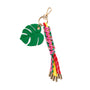 Add a splash of tropical charm to your bag with our Palm Leaf Bag Charm/Key Ring. Featuring a green palm leaf pendant and playful multicolor rope tassels, this accessory is both stylish and functional. It comes complete with a key ring and clasp hook so you can easily attach it to your favorite tote or use it to keep your keys handy. Whether you're seaside or landlocked, this charm brings a bit of the tropics wherever you go.